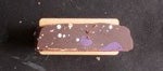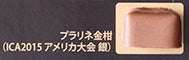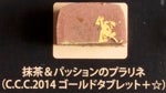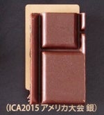 2013年、パリのC.C.Cで5タブレットをとった作品です。これはちょっと変わった感じです。塩味のプラリネです。大徳寺納豆も塩味ですけど、それとは違う塩味です。普通のプラリネはミルク・チョコレートと合わせるのですが、これはビター・チョコレートを合わせました。漬け物屋さんで万願寺とうがらしのフリーズドライの漬け物をつくってもらいました。万願寺とうがらしを塩漬けにして水洗いして、それを醤油につけ、さらにそれをドライにしたものです。食べていると唾液によってだんだんと万願寺とうがらしの漬け物が変わっていくさまを口の中で時間差で楽しむという、ちょっと変わったショコラです。これはタブレットにしてニューヨーク、ロンドンにも出品しました。最終的に一位になりました。