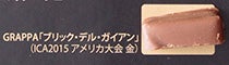 これも今年、ニューヨークで一位になりました。今年4月にソムリエ協会の皆さんの前でショコラ・セミナーをする機会がありました。ゲストにグラッパの会社、ベルタ社の今の社長が来日されていて、僕もベルタのグラッパが好きなので社長にプレゼントするためと、ソムリエの皆さんにも食べていただくということで2種類のグラッパのショコラをつくりました。そのうちの一種類です。ブリック・デル・ガイアンという、マスカットを原料としたワインを搾汁したあとの皮を蒸留し、樽熟成したグラッパに合わせたショコラです。これがニューヨークで一位になったので、ミラノ万博でショコラ・セミナーをした時、ベルタ社の社長にオーベルジュへ招待していただき、グラッパをいっぱい飲ませていただきました。グラッパはワインをつくるブドウの搾りカスです。ブドウ丸ごと使ったらグラッパとはいいません。皮の部分だけを使って初めてグラッパですが、特に樽熟成のものはアールグレイのような香りがします。香りを嗅いだ時に「エクアドルのアリバナショナルでつくりたい」と思いました。