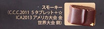 印象的なマリアージュで、ショコラを3つ紹介します。3つともパリのサロン・デュ・ショコラで発表される「クラブ・デ・クロクール・ドゥ・ショコラ(C.C.C.)」というショコラ愛好家の会が毎年行っているコンクールに関連したものです。去年、僕は「星付き最高位(ゴールドタブレット+☆)」と「審査員全員が満点を付けたショコラティエのみに与えられる称号」、2つの最優秀賞をいただきました。今年、作品は出品済みで5月に審査は終わっていますが、発表は日本時間で10月30日の深夜です。最優秀賞をとっていれば、5日前くらいに連絡が入るはずです。